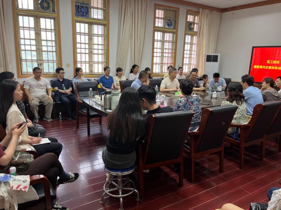 易險峰寄語大家以支部共建為平臺,在教學(xué)、科研和生活中發(fā)揮醫(yī)工結(jié)合優(yōu)勢。李志勇和電子信息系黨支部書記陳寧分別做了“人工智能+”相關(guān)的學(xué)術(shù)報告,湘雅醫(yī)院王成志工程師做了腎內(nèi)科技術(shù)創(chuàng)新研究報告,雙方就醫(yī)工結(jié)合科學(xué)研究進行了熱烈研討和籌劃。在湘雅醫(yī)院肖湘成教授帶領(lǐng)下,全體與會黨員重溫了入黨誓詞。