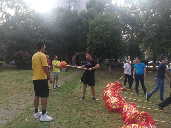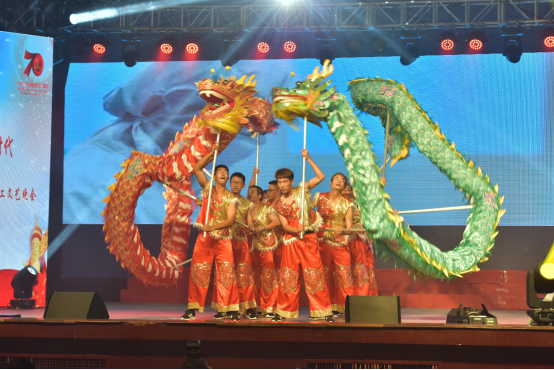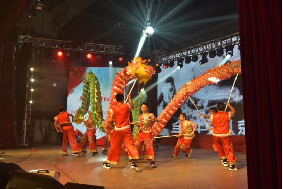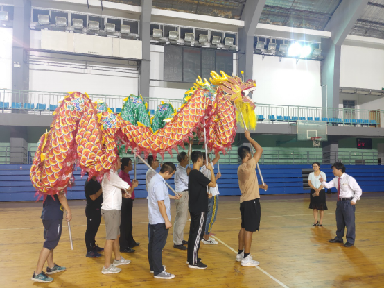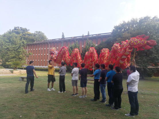 學(xué)院教職工舞龍隊(duì)的隊(duì)員們,在緊湊的科研、教學(xué)、工作以及學(xué)習(xí)之余,興致高昂地擠出時間在一起訓(xùn)練與交流心得。因?yàn)樗麄儾粌H僅希望能夠通過自己的努力大力弘揚(yáng)中華民族的優(yōu)秀傳統(tǒng)文化,更是想將拳拳愛國之心融入到日常訓(xùn)練的每一個動作之中,為祖國的繁榮昌盛與人民的幸福安康歡呼喝彩。終于功夫不負(fù)有心人,他們站在南校禮堂上用歡騰的舞龍為建國70周年獻(xiàn)上最衷心的祝福。