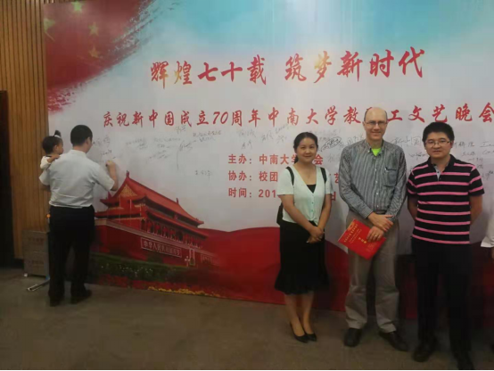9月27日,中南大學(xué)全體教職工在南校區(qū)禮堂舉辦了“輝煌七十載,筑夢新時代”慶祝新中國成立70周年中南大學(xué)教職工文藝晚會。中南大學(xué)校黨委書記易紅,校長田紅旗等領(lǐng)導(dǎo)班子成員以及全校教職工出席。自動化學(xué)院教職工舞龍隊(duì)在舞臺中央舞出了一場龍騰盛世,掀起了晚會高潮。