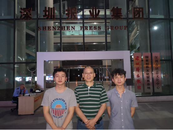 采訪團(tuán)隊(duì)與李照學(xué)校友在深圳報(bào)業(yè)門口合影留念