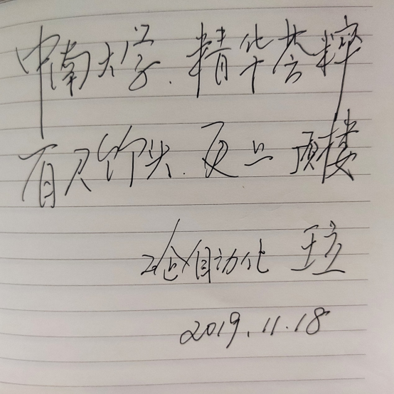 “現(xiàn)在社會變好了,每個(gè)人都可以自由選擇職業(yè),職業(yè)選擇的方向也多了,不像我們當(dāng)年要服從國家分配。現(xiàn)在國家也非常強(qiáng)大了,每個(gè)人吃飽穿暖基本都可以實(shí)現(xiàn)。現(xiàn)在有了互聯(lián)網(wǎng),每個(gè)人都可以在網(wǎng)絡(luò)上很容易地查到自己所需要的信息。中南學(xué)子一定要充分把握目前的機(jī)會,你們是趕上了信息化的大潮,趕上了國家高速發(fā)展的大潮。‘是金子總會發(fā)光’這句話在現(xiàn)在的社會上越來越容易實(shí)現(xiàn)了。”但王立也告誡中南學(xué)子不要學(xué)習(xí)網(wǎng)絡(luò)上那些網(wǎng)紅,不要把個(gè)人目前僅有的一點(diǎn)才能都展示出來,不要去渴望一種快餐式的掙錢方式,這種方式?jīng)]有可持續(xù)性,總會有才能枯竭的一天。中南人要有自己的內(nèi)涵,要給自己畫一個(gè)藍(lán)圖,要為一個(gè)目標(biāo)去奮斗;要多經(jīng)歷一些事情,不論經(jīng)歷事情是好是壞,但不是做違法亂紀(jì)的事,經(jīng)歷的事情多了就會增加自己的閱歷,這對未來的發(fā)展是有幫助的;要學(xué)好英語,多與國外做國際交往,不是說國外的月亮更圓,而是可以讓我們開拓視野,這樣才會培養(yǎng)出自己的想法,知道自己到底想要什么,才會主動出擊做自己想做的事。