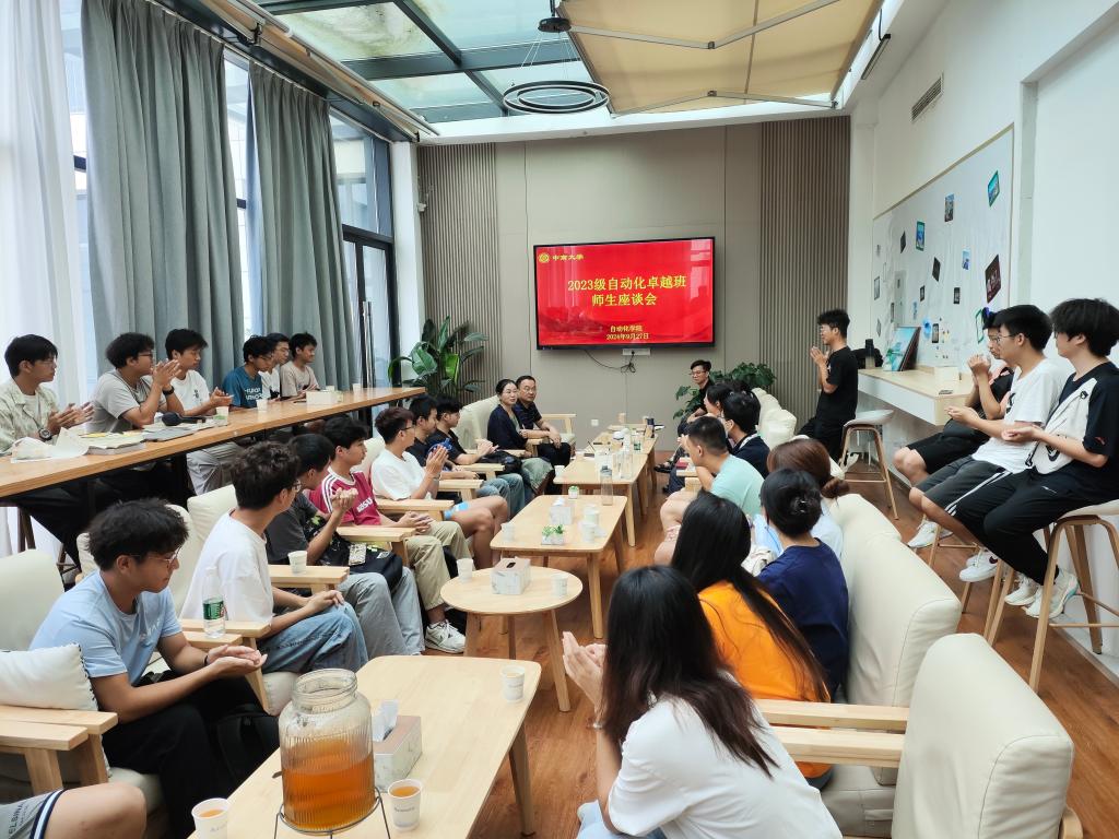 9月27日中午,自動(dòng)化2023級卓越班師生座談會(huì)在信息三樓智空間進(jìn)行。副院長梁步閣、自動(dòng)化系主任蔣朝輝、自動(dòng)化系支部書記董密、自動(dòng)化專業(yè)負(fù)責(zé)人凌玉華、班導(dǎo)師羅旗舞、輔導(dǎo)員侯曉雙及23級卓越班全體同學(xué)參加會(huì)議。座談會(huì)由教務(wù)辦主任萬輝主持。