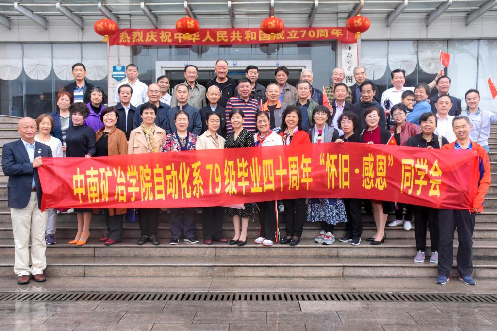 2019年10月12日上午,中南大學自動化學院舉行前中南礦冶學院自動化系79級校友返校活動,副院長鄒潤民等出席了本次活動。活動于8:50正式開始。在志愿者的引領下,79級返校校友乘大巴從本部出發(fā),環(huán)行參觀了新校區(qū)。經過ABCD四棟教學樓、實驗樓、外語樓以及中南大學體育館“鳥巢”,并在圖書館前合影。隨后,校友們來到了校本部民主樓。面對著曾經的教學樓,校友們無比喜悅。民主樓前拍照合影時,校友們好似回到了四十年前的激情...